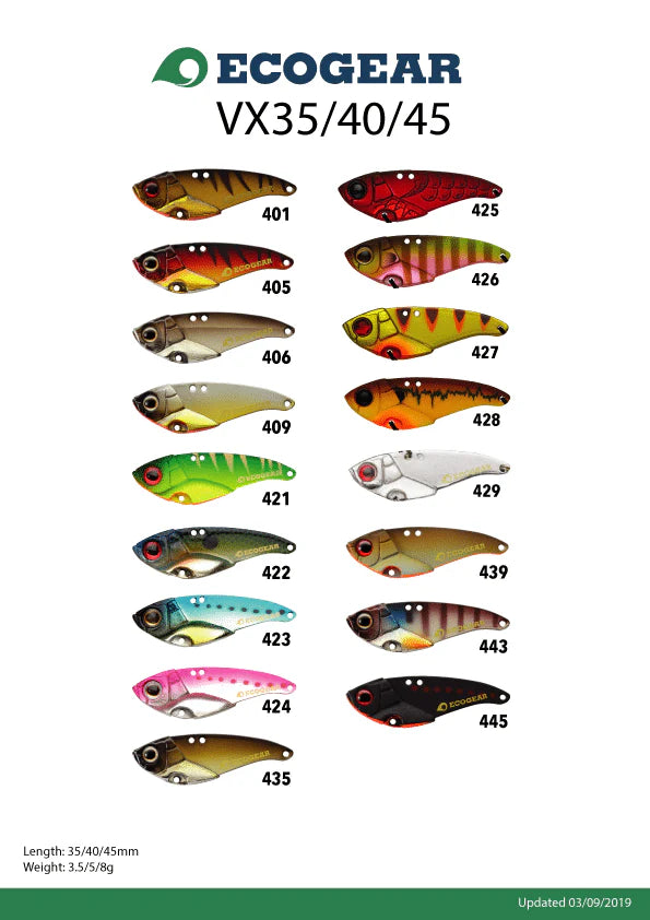 The extra weight in the new larger 50mm VX lures make them great for vertical jigging. Big enough to hold their own against larger fish, the extra weight also stops them from being pulled around by tidal currents getting you into your target range faster and easier.